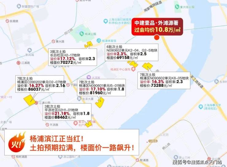 杨浦滨江多幅地块高溢价率拍出,溢价率最高的宅地达到约21.18%,楼板价高达约8.8万/㎡,售价达到约12.7万/㎡!