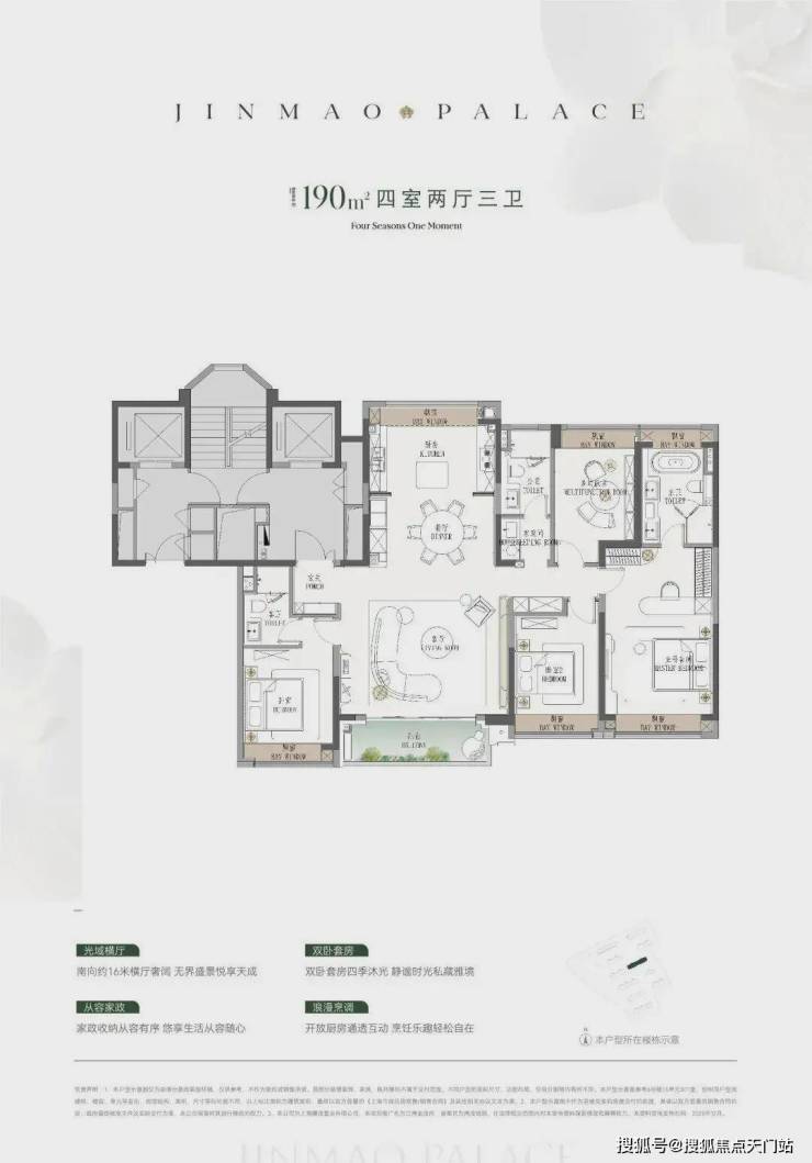 ● 建面约190㎡4房:楼王位置的顶奢大平层,同价位段在杨浦只能买到约120㎡3房!
