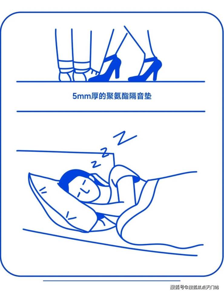 为应对这一难题,一种有效做法是在结构楼板上铺设隔音垫。这种隔音垫由聚氨酯和其他高密度材料制成,能有效吸收声音,减少楼层间的撞击与振动噪音。 然而,受制于大面积铺设所带来的较高成本 , 这种材料 在常规住宅项目中 并未得到广泛应用 。为追求更好的层间隔声效果,贝涟C1在除盥洗室和厨房以外的所有区域均铺设5mm厚的 聚氨酯隔音垫 ,让每一分投入都能实实在在地提升业主的生活品质。