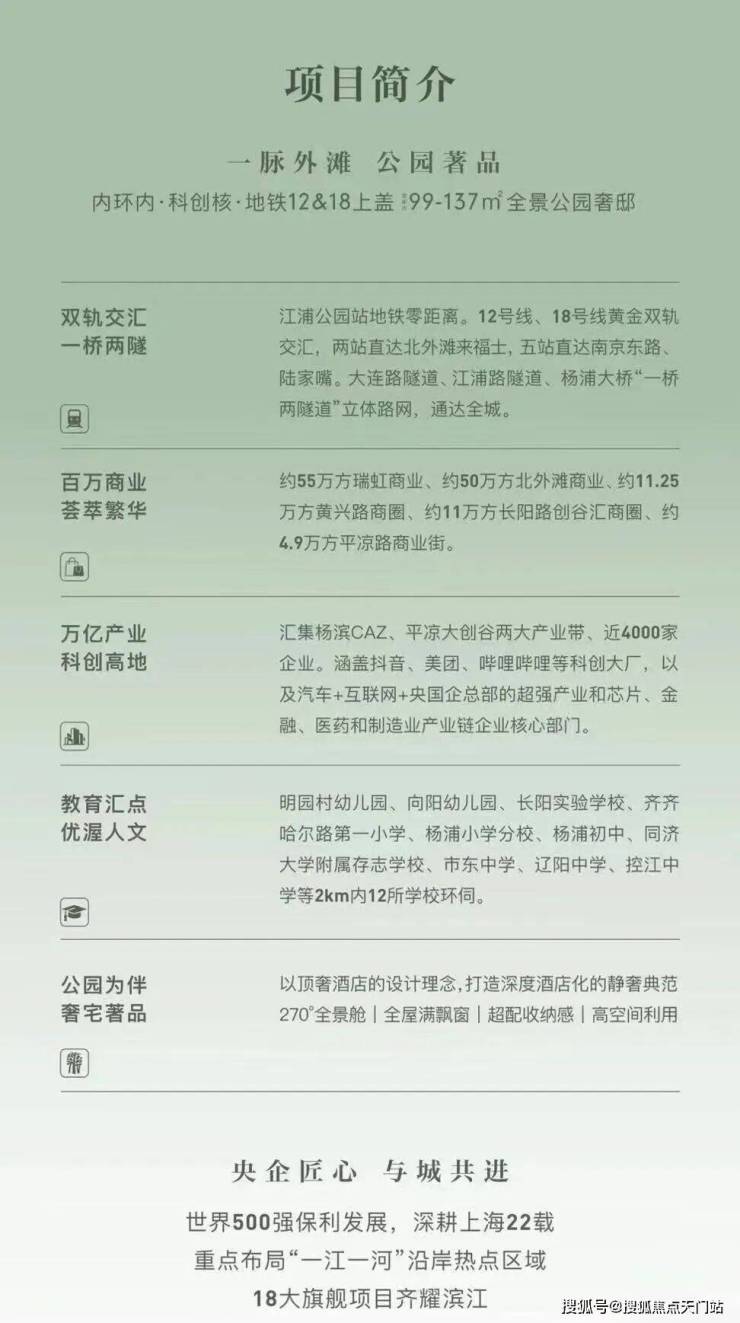 保利外滩启PARK77,是大连路总部集群、长阳创谷、杨浦滨江产业带这三大产业共同的芯,凭借极近距离和优越区位,成为三大产业区人才居住优选之地,也是项目未来价值保障。