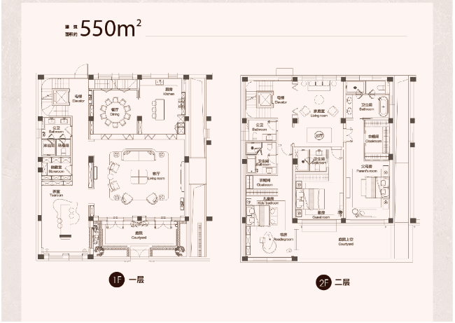 52套别墅,主力建筑面积:地上220-550平,上下5层一层层高约3.6米,二层3.4米,二层3个套房三层是主卧空间+露台地下两层挑空厅再下面一层是私家停️车库