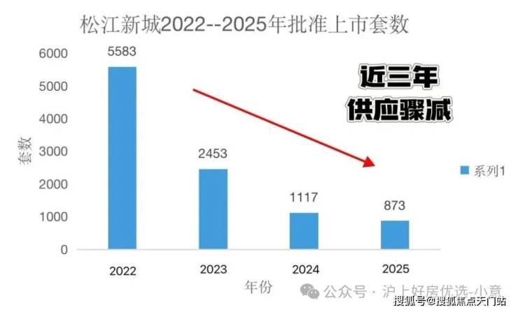 2022年,松江新城的新房供应为5583套新房。随后逐年走低,2023年2453套,2024年1117套,到了今年仅有837套。