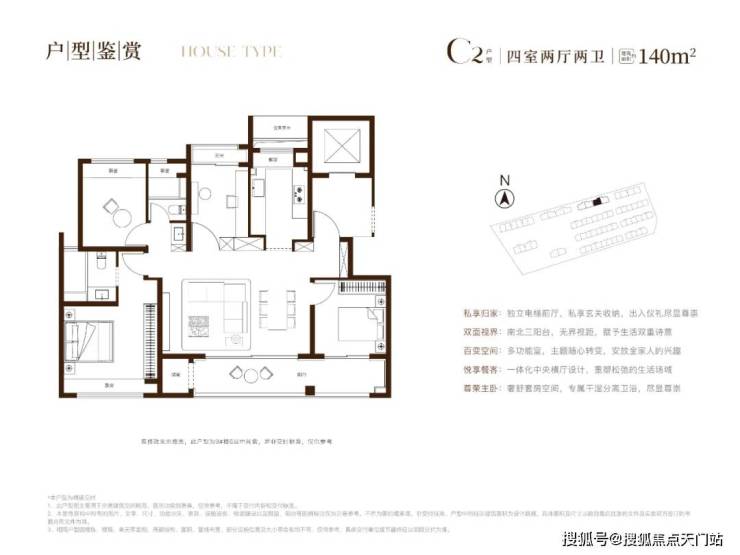 两梯两户、南北通的全明户型,多阳台设计,实用率约86%!几乎可以媲美市面上大多数约140㎡的室内空间,三开间朝南采光面足,适合年轻家庭改善居住的奢阔户型!