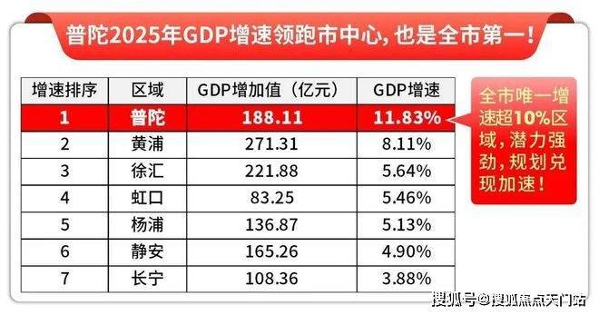 为何环宇玖章能创下现象级热度、让购房者毫不犹豫落位?核心源于市场对 真如多年规划全面兑现 的高度认可,以及对普陀未来发展的坚定信心。 首先,2025年普陀GDP增速领跑市中心、位列全市第一! 全市平均增速约5%,普陀以 11.83% 一骑绝尘,是全市 唯一增速破10% 的区域。强劲数据印证普陀正进入价值爆发期,早年布局的产业与城建,如今全面进入“收获期”,发展后劲十足。