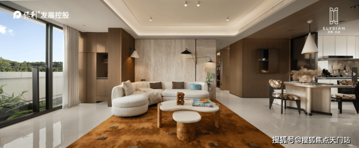 保利天奕室内大量运用弧形元素,既消弭日常起居的磕碰隐患,又为空间注入优雅气息。