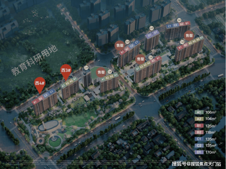 本次是项目的收官之作, 推出西3#、西4#,建面约104-135㎡的3-4房,共计128套