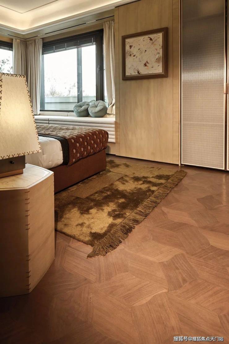卧室地板也不是简单横拼竖拼,而是 主卧采用复杂的树叶拼,保利明知这种拼法成本更高、耗材更多,但依然坚持,为的就是给予业主更美观的享受。