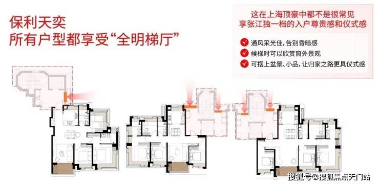 比如,所有户型的电梯厅均采用全明设计,带来优异采光和通风效果同时,更是在空间通透感及安全体验上都得到了全面优化。