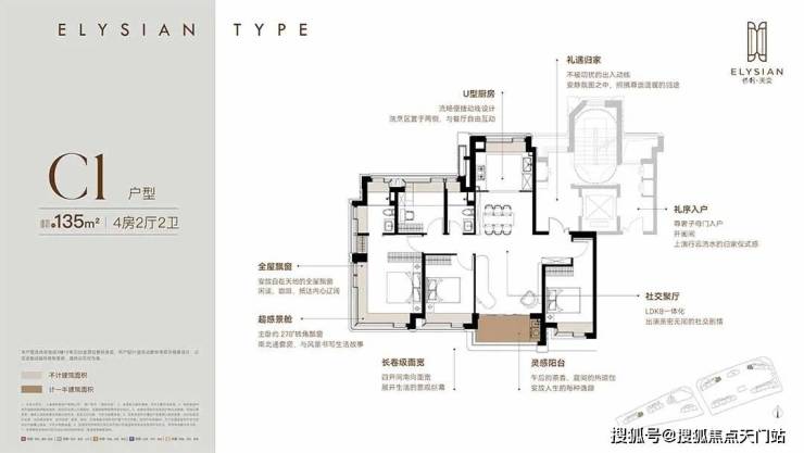 以C1户型为例,首先在面积上,上海新房市场比较宜居的面积在145m²左右,那本户型135m²的面积就很合适了。