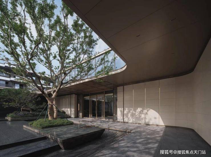 东方意境融于品质用材:石材迎宾、高品质植被、格栅意境