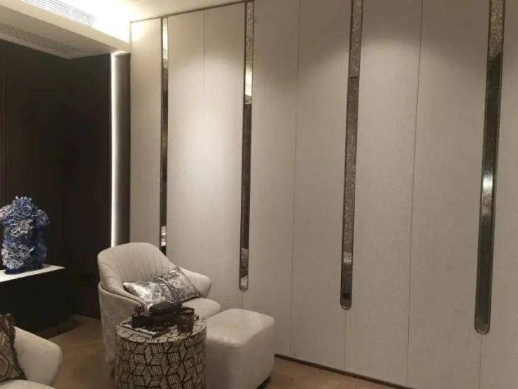 地上精装大堂的设计同样出彩, 地面的石材拼花造型与墙面的石材背景相得益彰,将静奢海派的艺术风格展现得淋漓尽致,为业主带来无与伦比的视觉盛宴。