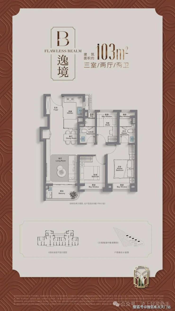建筑面积约95/105㎡三房,进阶改善绝版“三阳台”户型