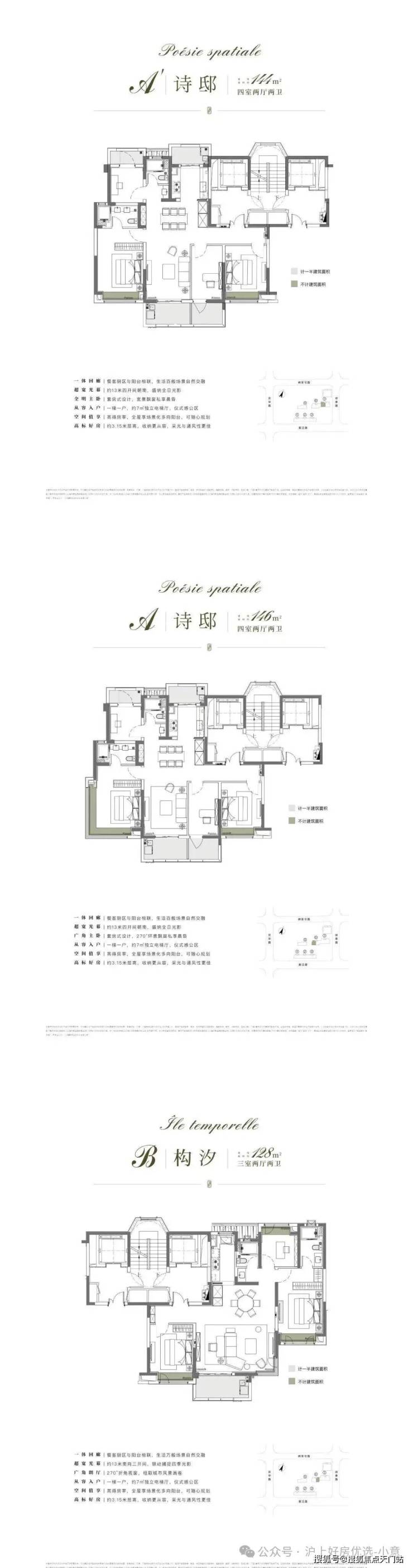 项目主力户型建面约116-146㎡3-4房,均价60562元/㎡,记得前期均价还在6.3万/㎡,房价的确降了。打造【晶】系法式作品,项目全套户型图+效果图过程稿现已出炉!
