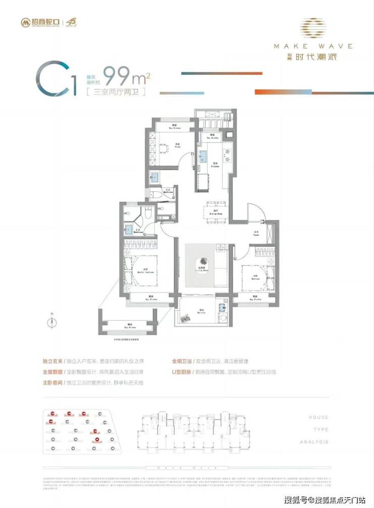 项目99平的户型,是项目的王炸主推户型,仅需约500万起即可上车。