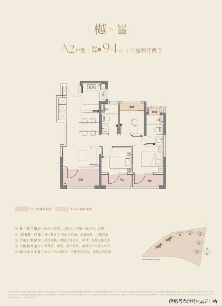大华望樾的高层建面约94㎡户型做到了 三阳台 的配置;