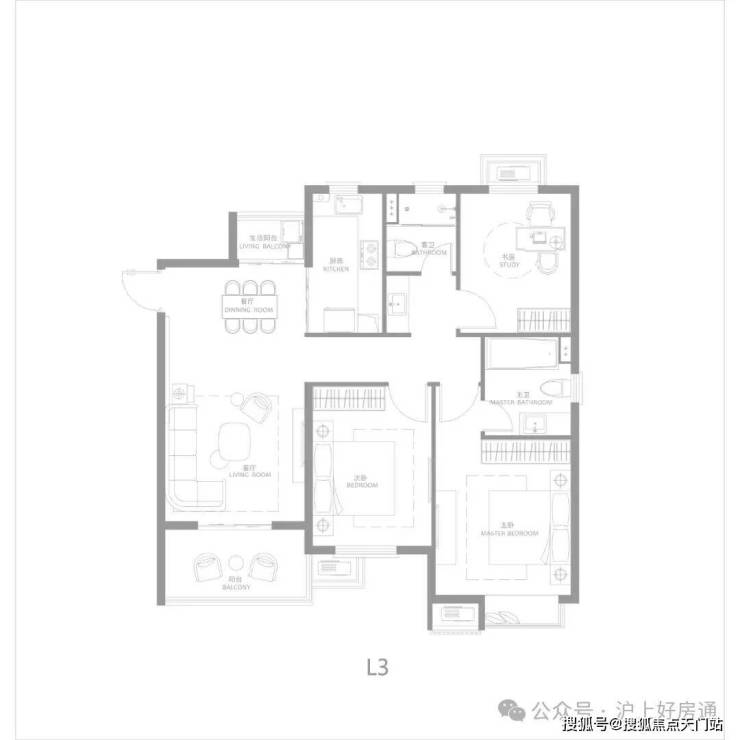 建面约116㎡三房两厅两卫,南北通透,户型方正,主卧大套房,带阳台与独立主卫,更舒适的居住尺度。