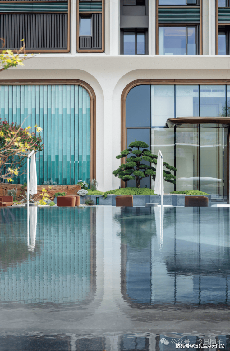 九艺落位,门前皆景:从入口的石艺,到最后一个庭院的泉艺,中建玖上琅宸每一栋楼的门前,都有对应定制的设计主题。