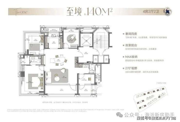 以约13.95米的南向超大面宽为基调,主卧面宽升级至约4.15米,规划可自由定义的X灵动空间,可以是书房、茶室或琴房,伴随家庭全周期成长而演变,让每位家人都能获得精神的沉淀与自我的和解。面宽约5.8米双厅则完全超越功能范畴,成为承载家族宴请、圈层社交的恢弘场域,尽显居者的格局与风范。270°转角巨幕视野,将光、风与景致更大程度地引入室内。