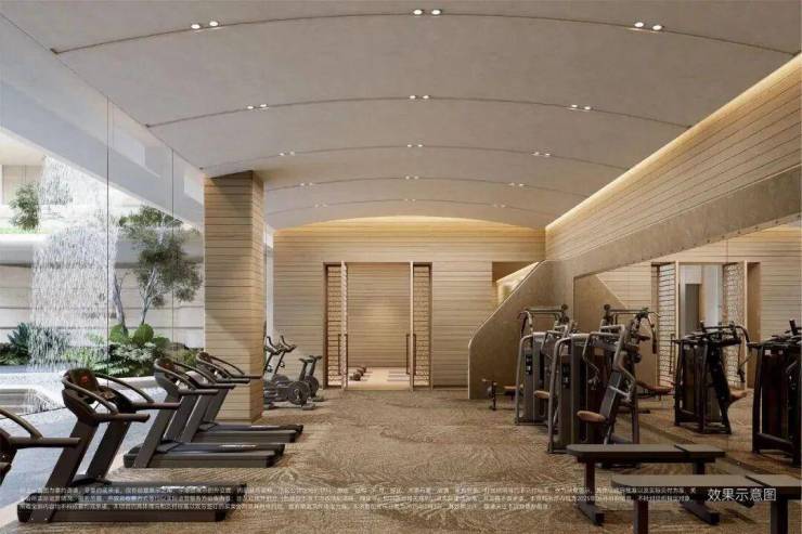 约2900平米地上地下泛会所及活动空间,给予生活度假般的感受,地下层设有国际标准壁球馆、园景健身房,地上架空层为最高悬挑越7.2米的泛会所空间,以休闲下沉卡座、水吧台、休闲会客区、联动室外水池,打造酒店式度假空间等柔化社区与自然的边界。
