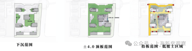 上海截止目前大采光量的阳光地库: 通过下沉会所+每栋楼的下沉花园实现 ,将自然光和通风引入地下车库,减少压抑感,改善环境,降低能耗,同时最大化地下空间利用与优化停车体验。