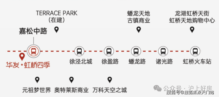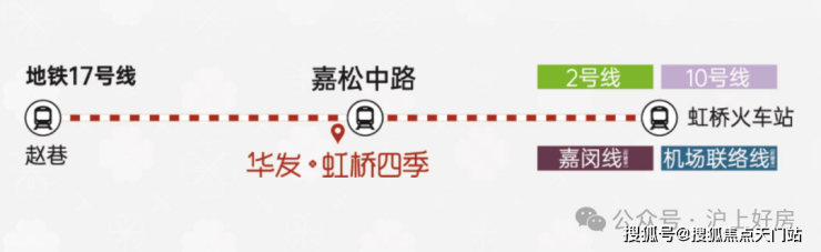 轨道交通方面:项目距离17号线嘉松中路站仅约700米,步行即可到达。2站徐盈路、3站蟠龙路、4站诸光路、5站虹桥火车站,可无缝换乘2号线、10号线、机场联络线(在建中)、嘉闵线(在建中),直达漕河泾开发区、人民广场及市中心各个区域。