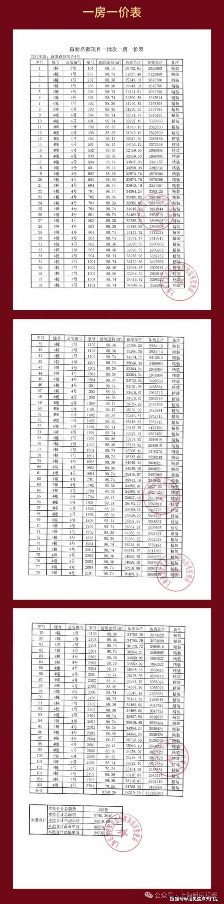 上期一房一价表如下: