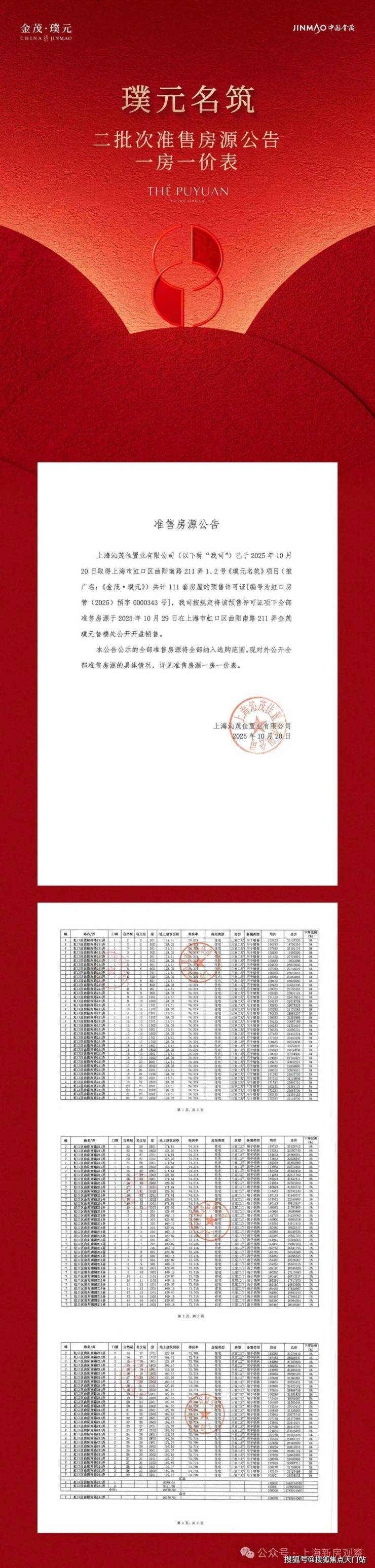 最新消息!上海2025年首个地王“瑞虹地王”金茂+庆隆瑞虹项目正式定名「金茂·璞元」 首开售罄,二批次加推约126-170㎡3-4房;均价16.8万/㎡!认购金206万!认购时间:10月21日-10月24日!2000-3000万买房必看!实景示范区现已开放,预约接待!约1700平奢享会所+1F架空层泛会所!