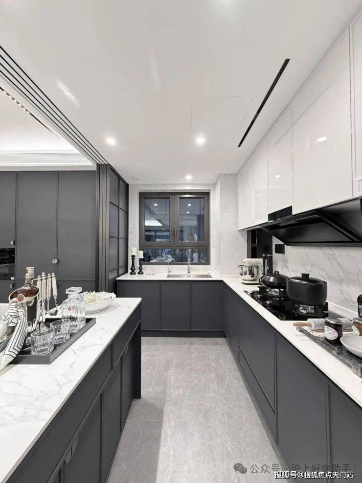 比如,厨房配了珍珠白吊柜、三组抽屉式拉篮合理搭配,调料架收纳、大容量踢脚抽、清洁用品收纳区,米面粮油、碗碟刀叉都可完美隐身。