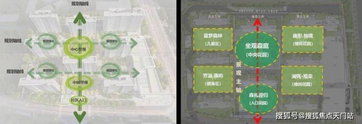 围绕“一轴·一心·四园”的景观设计理念 ,以中央花园和健康静谧的组团花园,通过现代主义建筑风格演绎,呈现充满运动活力和健康生活的公园式品质社区。
