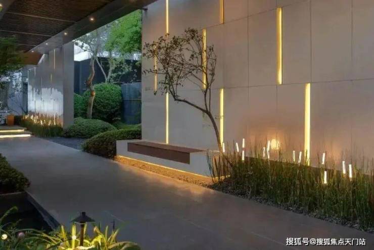 各式各样的艺术景墙映入眼帘,辅以仪式感排布的弯杆铁冬青树阵,树植掩映之间,呈现一幅热情且不喧闹的迎宾之姿,消弭城市喧嚣,礼遇进出的每一步。