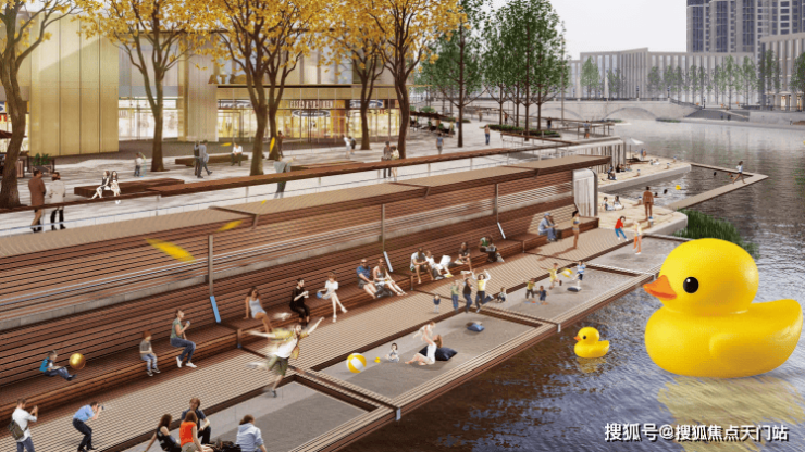项目规划涵盖亲水商业、水上运动与滨水商务等多重场景,通过滨水骑行道串联前滩商务区,设置亲水Mall露台、滨水商街、社区底商三重商业体系,构建出立体化的滨水生活场景。