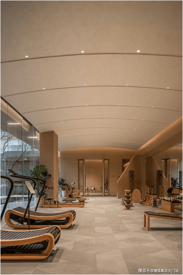 自然贯穿了整个社区公区的设计语言,整体约1200㎡立体会所+约1700㎡主题架空层,配备了私宴厅、瑜伽室、棋牌室等休闲空间。