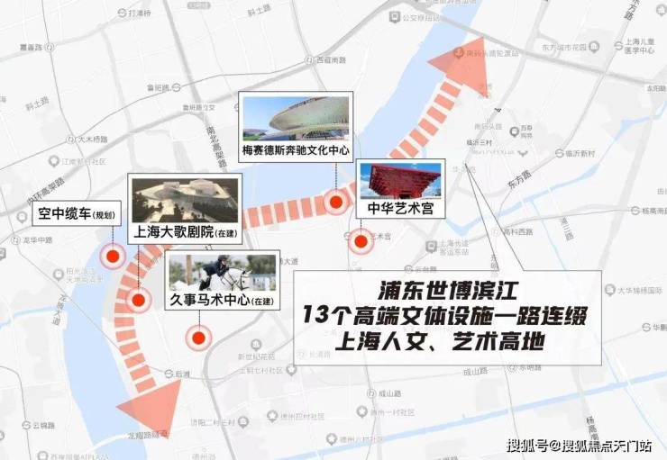 艺术休闲氛围,全上海封顶:向北约800米是占地200万㎡的世博文化公园,国内最高人工山“双子山”、国际马术中心;周边是全球大师打造的13座国际级艺术展馆,形成比肩伦敦西区、纽约百老汇的世界级文化艺术中心。