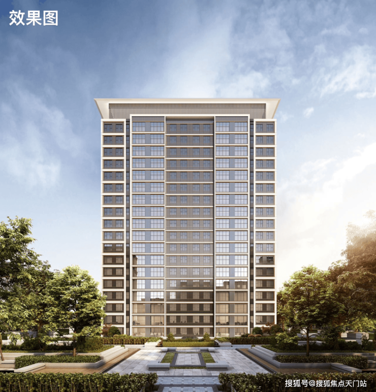 外立面采用经典时尚现代主义风格:通过温和的色彩搭配、简练的横向线条、黄金比例的立面比例、极简抽象的建筑符号、建筑顶部的飘板,呈现一个现代风格和艺术气质结合的高品质社区。