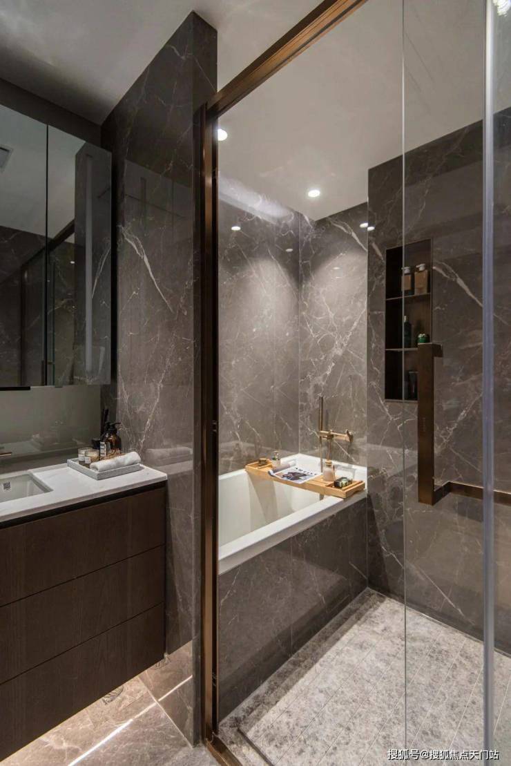 主卧主打大气雍容,落地窗带来明亮光线,留出随时随地可放松自我的一角,套内浴室实现浴缸+淋浴双配置。
