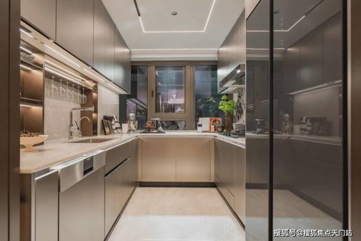 就连冰箱柜也巧妙隐藏其中,让空间更显整洁统一。