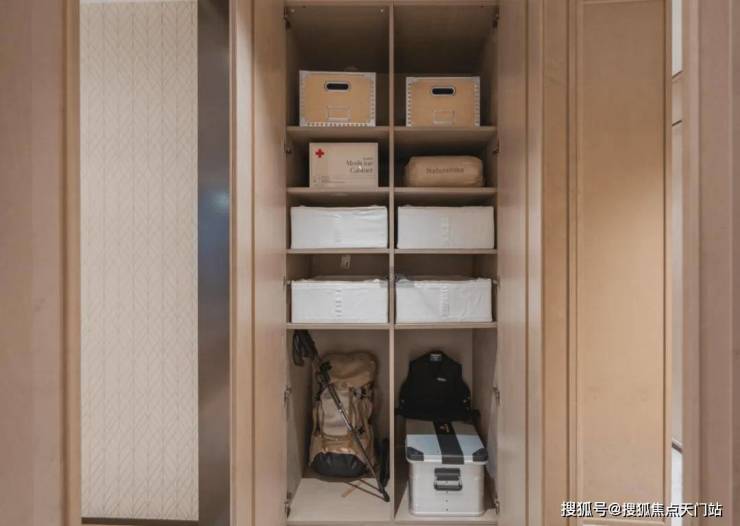 项目137户型进门做了一整排收纳柜,堪称收纳界的“精细管家”,分类科学到让每一件物品都能精准归位。