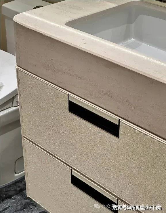 卫生间下柜同样是皮革包裹交付,标配智能马桶盖板: