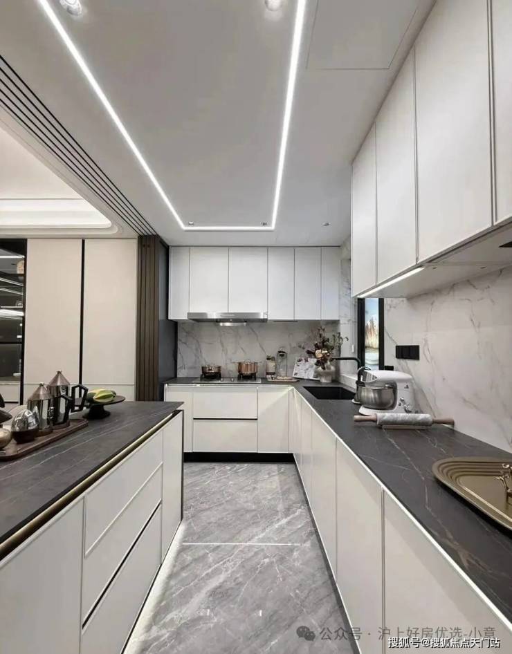 收纳空间全部都是来自博洛尼专属定制(或同等品牌),真正做到拎包入住、省去后期定制比价的烦恼;而在收纳空间之外,外滩源著在用料上同样可以称得上卷王——项目厨房台面是全进口的西班牙DEKTON品牌: