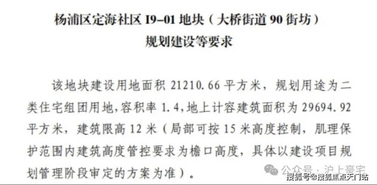 规划建设等要求该地块建设用地面积 21210.66平方米, 规划用途为二类住宅组团用地,容积率1.4,地上计容建筑面积为29694.92平方米,建筑限高12米。此次该地块成交价为225682万元,楼面价约76000元/㎡。