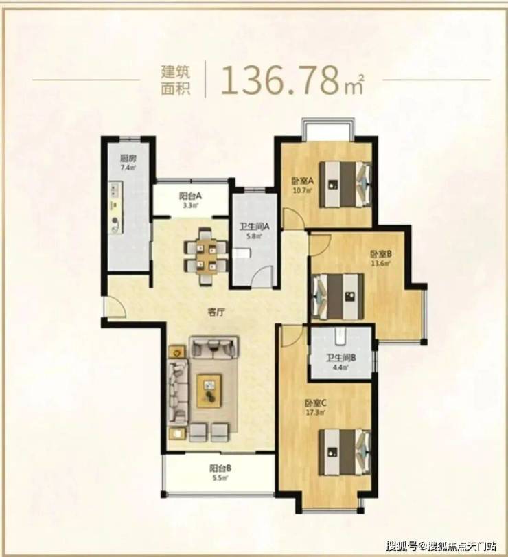 4号401室建面约136.78m²3房,总价10169045元