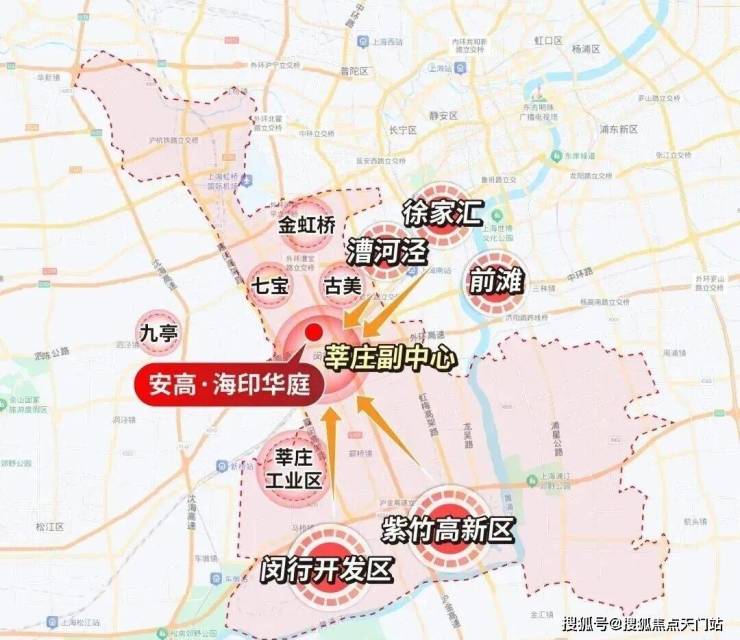 但若你从地图上看,莘庄恰好就处在“心脏”地带,漕河泾、七宝、莘庄工业区、航天城、闵开发、紫竹就像众星拱月般将莘庄环绕在中间。