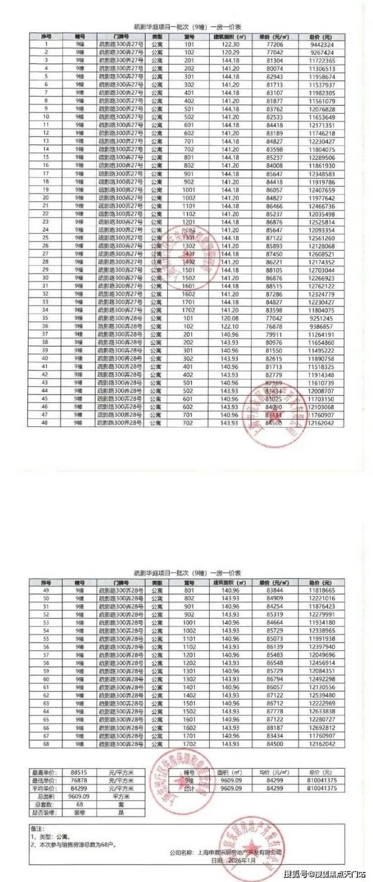 二批均价84299元/㎡