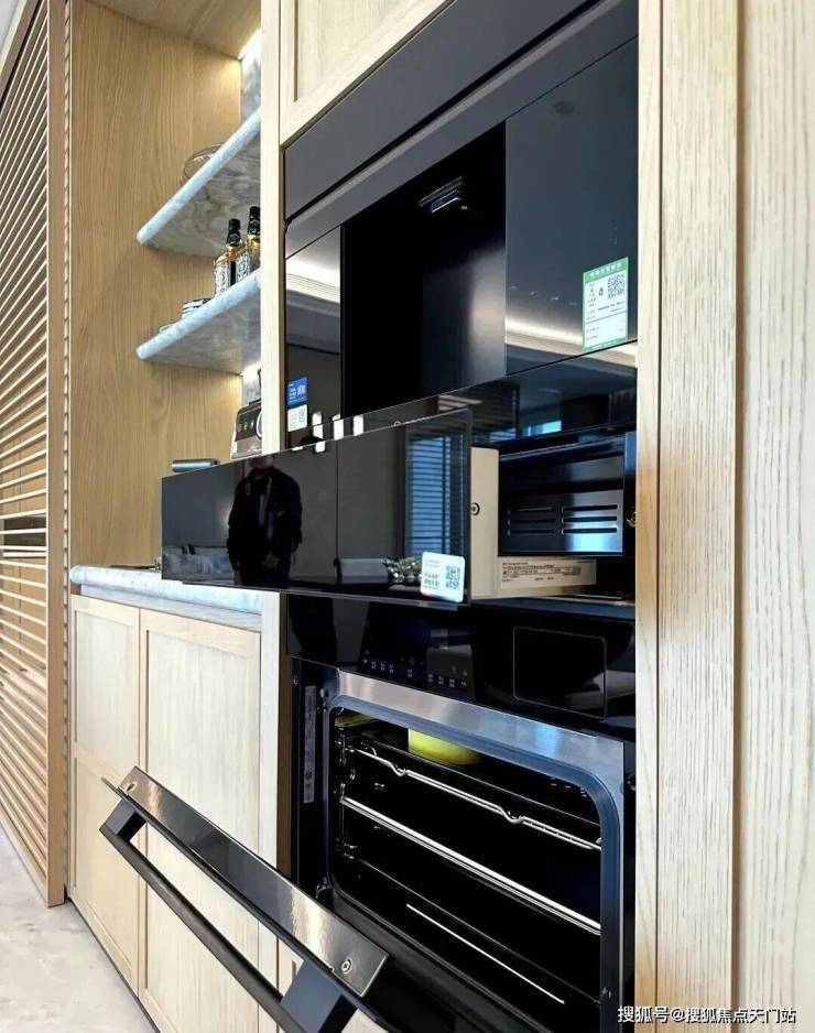 •电动调味舱(建面约143㎡户型):隐藏调味品易拿取,保持台面整洁;