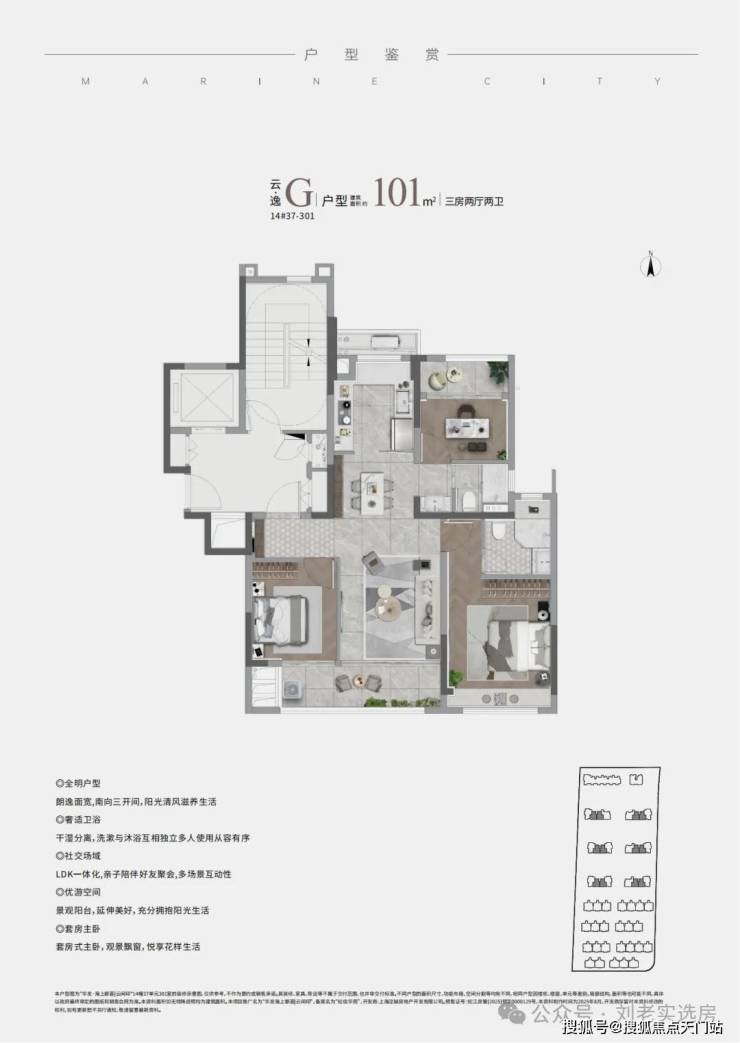 事实上中间套G户型的阳台面积也接近11.5㎡,同样超越了新规的标准!