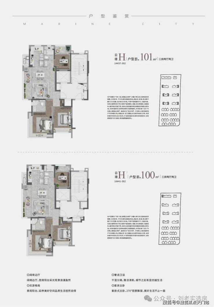 H户型:把“江景+中轴+墅区”这三重景观资源一网打尽!