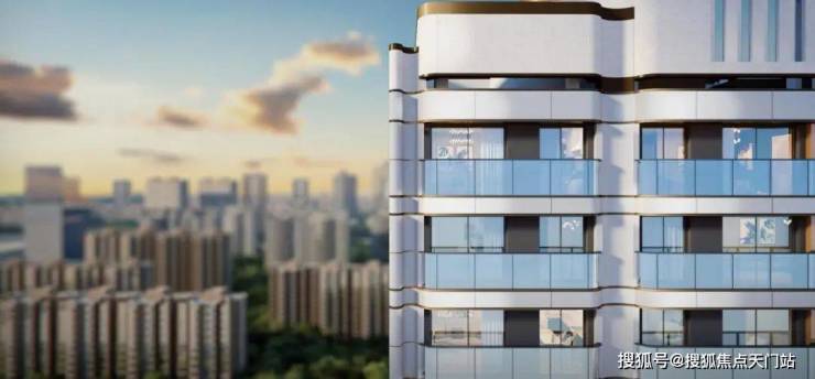项目高层立面的设计灵感源自武康大楼的曲面弧形。在保证现代化居住舒适性的情况下,呈现经典的曲面转角、Art-Deco法式装饰阳台以及经典的三段式黄金比例运用。