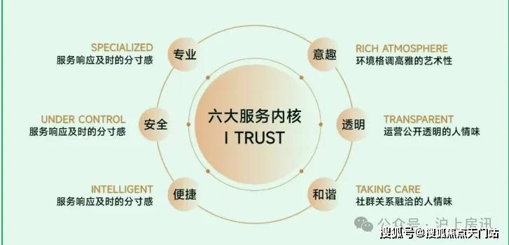 【保利虹桥和颂】全新作品,将品质服务品牌"亲情合院"深度融入日常生活,以 "让家更暖"初心理念,围绕 真、善、美、和四大维度,在社区落地呈现 " I TRUST "六大服务体系,打造有生命的空间,有温情的社区,有质感的生活。
