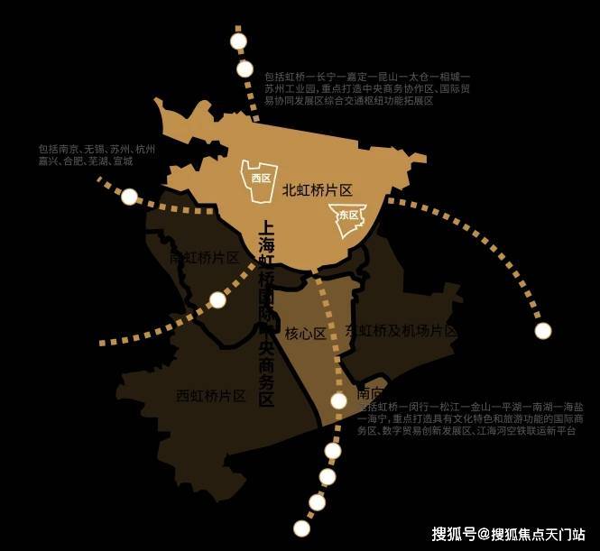 上虹桥依托东西两个片区(西居东产,共计约167公顷),遵循“以人为本、产城融合、多元包容、活力共享”的理念,整体打造创新经济集聚区、中央商务配套区和高品质国际化社区。