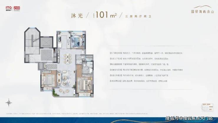 除了叠墅外,全社区仅4幢建面约101㎡沐光全景小高层,通过前瞻排布,几乎做到了户户景观无遮挡。